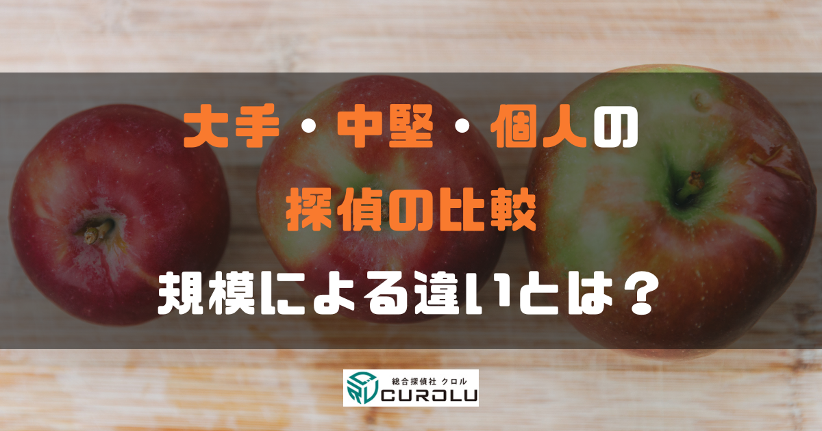 探偵社は規模によって、調査の質、信頼性、料金体系などが異なります。大手・中堅・個人の探偵の特徴について説明します。