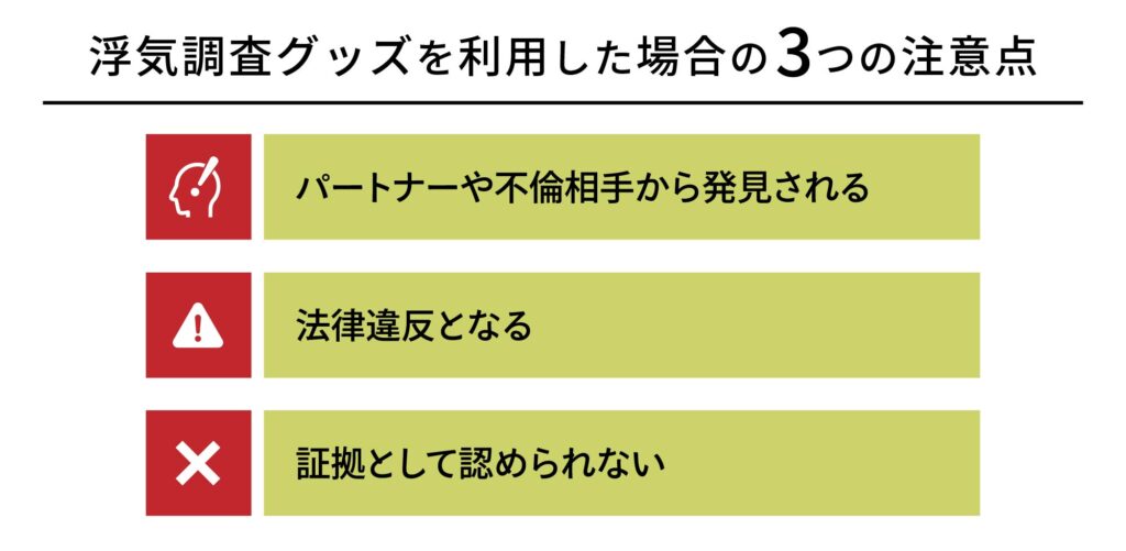 パートナーの浮気調査をする際に、浮気調査グッズを利用すると以下のような可能性があるので注意しましょう。