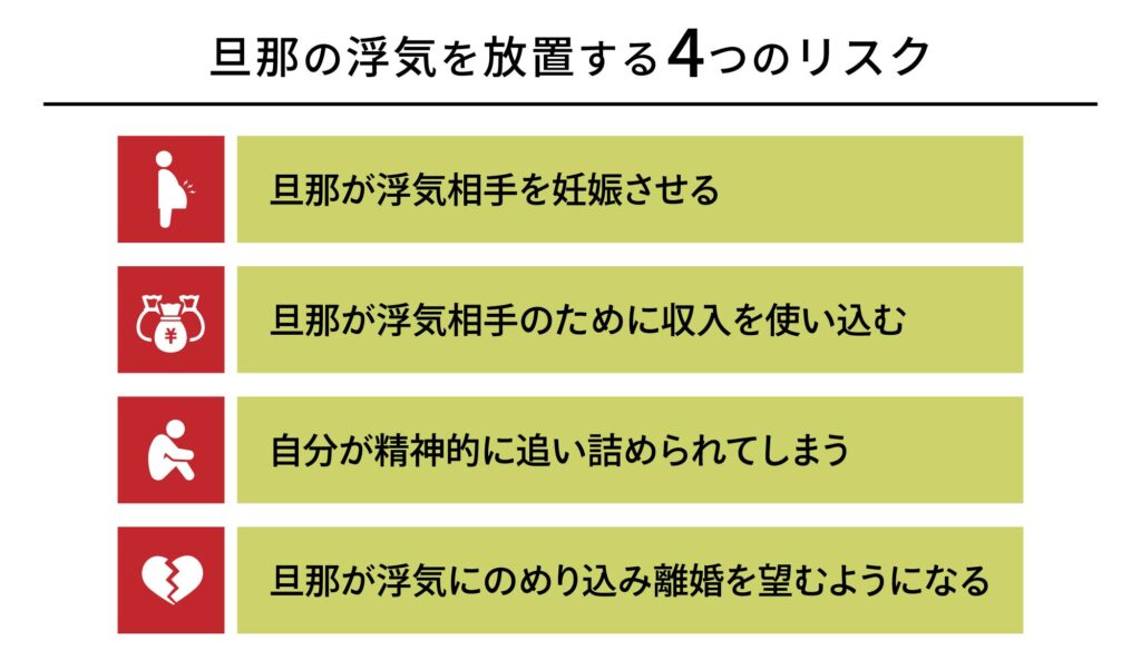 旦那の浮気を放置すると、このように取り返しのつかない事態に発展する可能性があるので、早めに適切な方法で対処することが大切です。