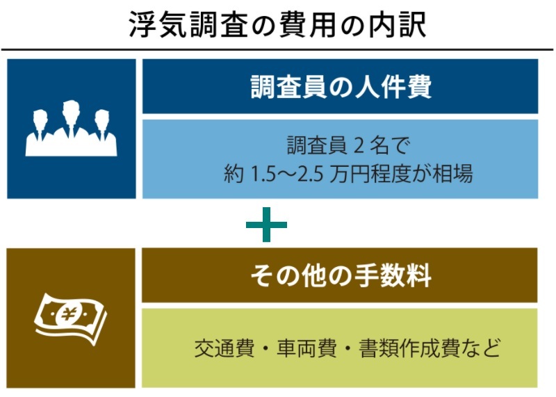 まず、調査員の人数分の人件費が必要となります。人件費は調査員1名~2名で約1.5~3万円程度かかるので、事前に見積りを依頼して確認しておきましょう。
