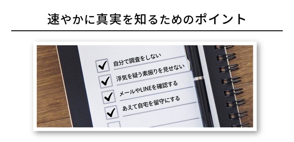 パートナーに浮気の疑いがある場合は、速やかに調査をして真実を知ることが大切です。そのために重要なポイントを紹介します。